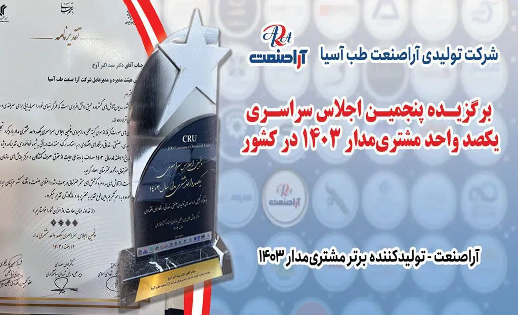 شرکت آراصنعت طب آسیا، به عنوان یکی از برگزیدگان پنجمین اجلاس سراسری یکصد واحد مشتری مدار 1403 منصوب ...