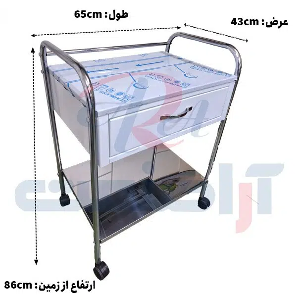 – بررسی مشخصات ترالی پزشکی پانسمان کشودار یک کشو مدل 940 آراصنعت: