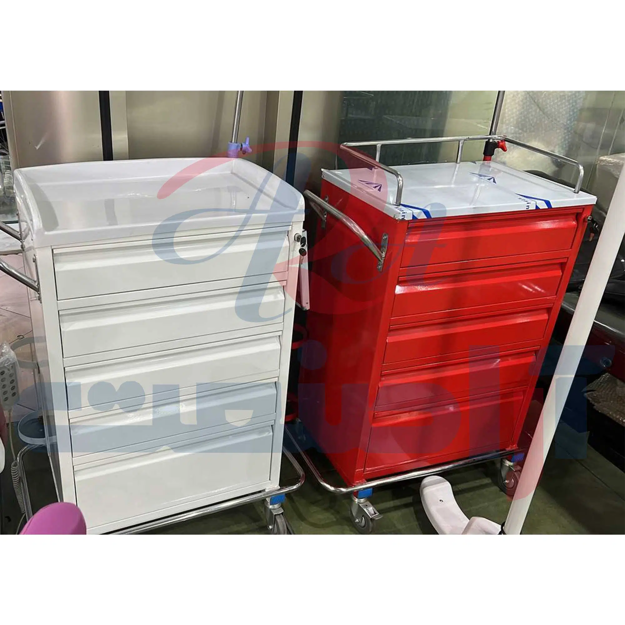 ترالی پزشکی اورژانس 5 کشو فلز آرا صنعت کد 950 یک محصول بسیار کاربردی از خانوادهی ترالیهاست. ترالی اورژانس آراصنعت، در مدل 5 کشودار قابل سفارش میباشد و مجهز به جایگاه کپسول اکسیژن، میله سرم و کمدهای قفلدار است.