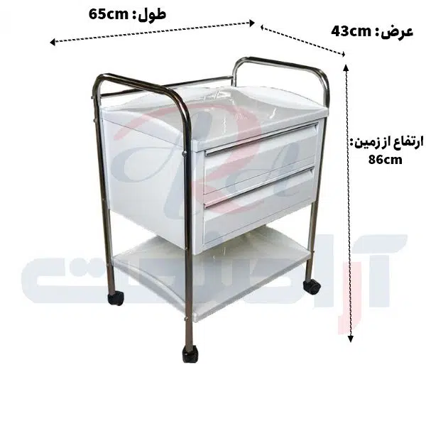 – بررسی مشخصات بدنه و خرید ترالی پزشکی پانسمان دو کشو | ترالی مطب مدل 850 آراصنعت: